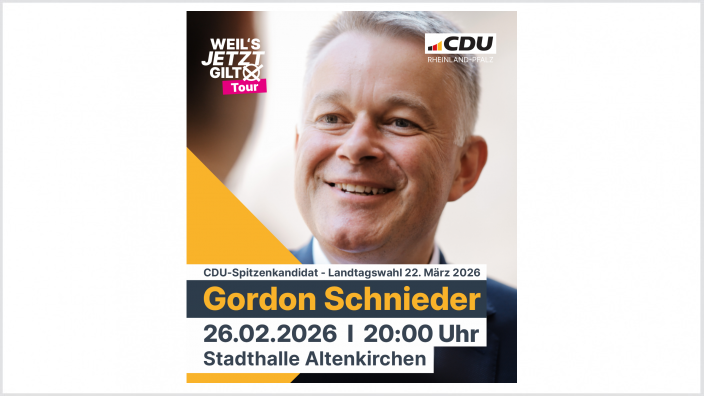 Gordon Schnieder, CDU-Spitzenkandidat, hat einen klare Vision für Rheinland-Pfalz. "Wir leben in einem wunderbaren Bundesland. Aber es funktioniert an zu vielen Stellen nicht so wie es sollte. Ich möchte dieses Land voranbringen. Wir wollen den Menschen eine gute, eine bessere Zukunft...