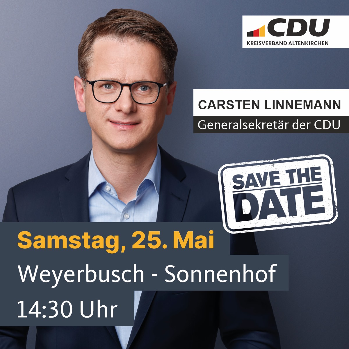 Wir freuen uns sehr, dass wir den Generalsekretär der CDU Deutschlands, Dr. Carsten Linnemann, MdB auf unserer Veranstaltung begrüßen dürfen.